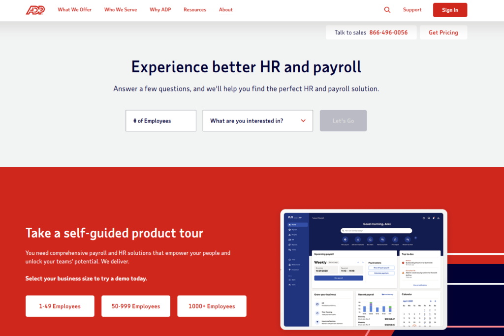 | Best For | Mid-market companies (75–750 employees) that need the deepest payroll expertise, the most comprehensive compliance infrastructure, and the option to outsource payroll administration to ADP’s managed services team |