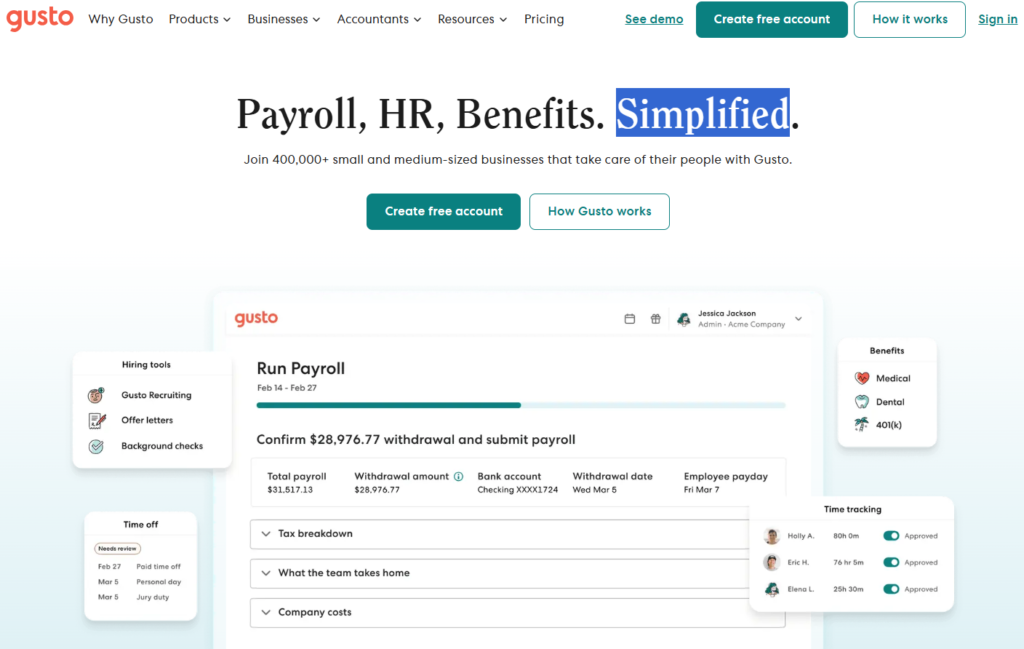 3. Gusto — Best All-in-One HR and Payroll for Small Businesses
