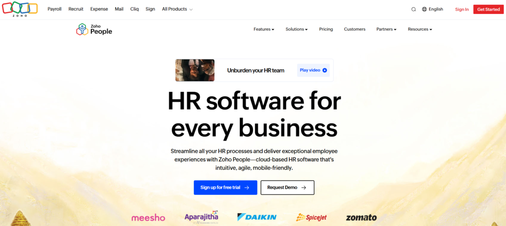 | Integration | Zoho suite (CRM, Books, Projects, Recruit, Analytics); Slack; biometric attendance hardware; Zapier for third-party connections; limited native third-party integrations compared to category leaders |