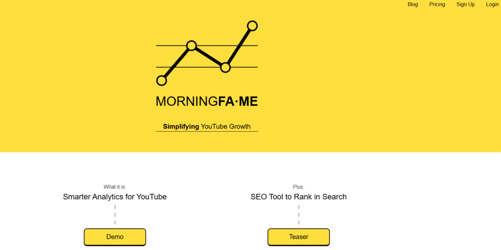 | 7 | Morningfame | Guided YouTube analytics and keyword research for growing channels | Basic $4.90/mo | No (1-month free trial with invite) | Simplified guided analytics with actionable growth recommendations | 8.6/10 |