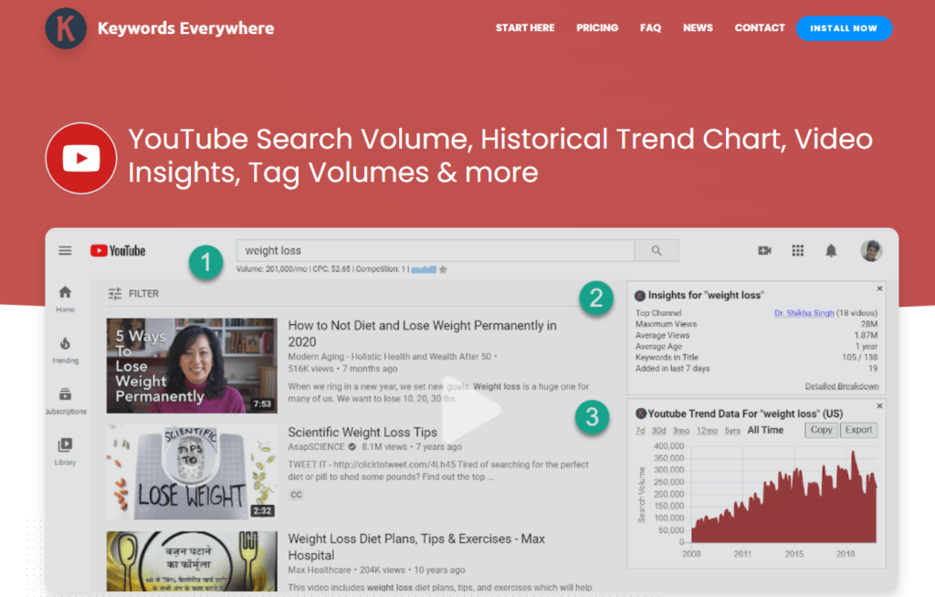 4. Keywords Everywhere — Best for Keyword Volume Data Inside YouTube Search