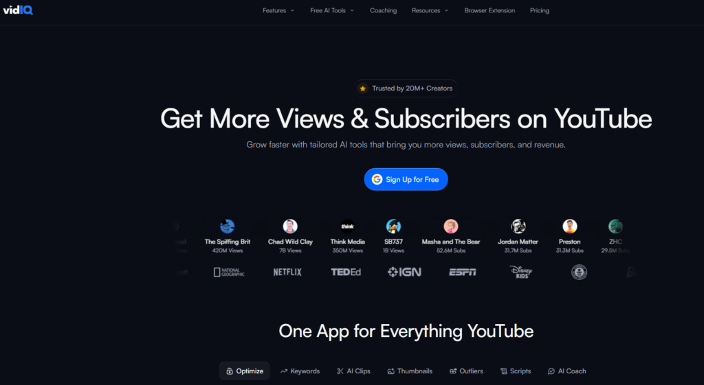 vidIQ positions itself as an analytics-first YouTube growth platform — and the data depth it delivers for competitive channel analysis and performance tracking justifies that positioning. Where TubeBuddy’s design philosophy is optimization and productivity, vidIQ’s is intelligence and insight. The two tools serve sufficiently different primary workflows that many professional creators and YouTube agencies run both simultaneously.